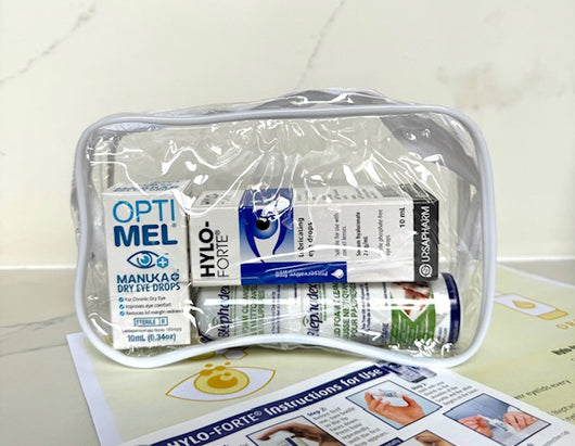 The DRYEYEKIT includes the Optimel Manuka Honey Dry Eye Drops which are formulated for